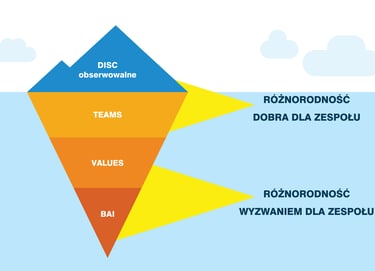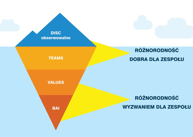 Jak góra lodowa: Widoczne zachowania (DISC) + ukryte skarby poniżej (motywy i wartości)! 🧊✨